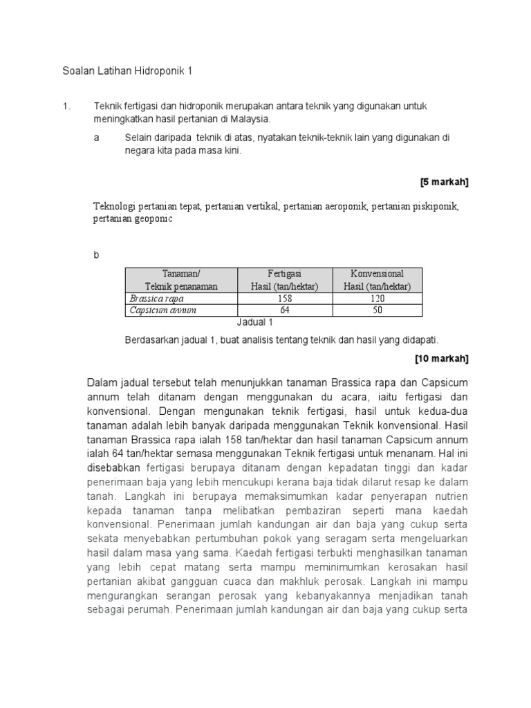 Soalan Latihan Hidroponik 1 Pdf